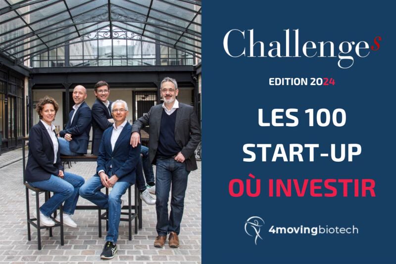 We are delighted to announce that 4Moving Biotech has been selected as one of the top 100 startups to invest in 2024 by the prestigious economic magazine Challenges.